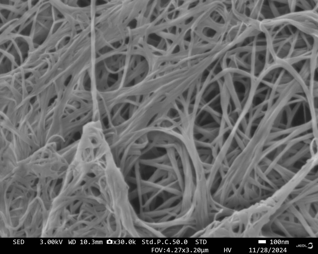 湿式バイオセルロースマスク電子顕微鏡画像(30,000倍)